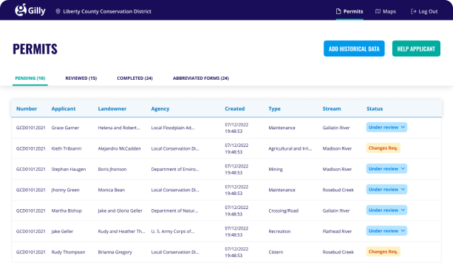 Gilly’s platform gives Conservation Districts secure access to current and historical permit data—helping manage inspections, complaints, and approvals all in one place. Review, approve, and track applications confidently in a system designed to save time, improve accuracy, and reduce paperwork.